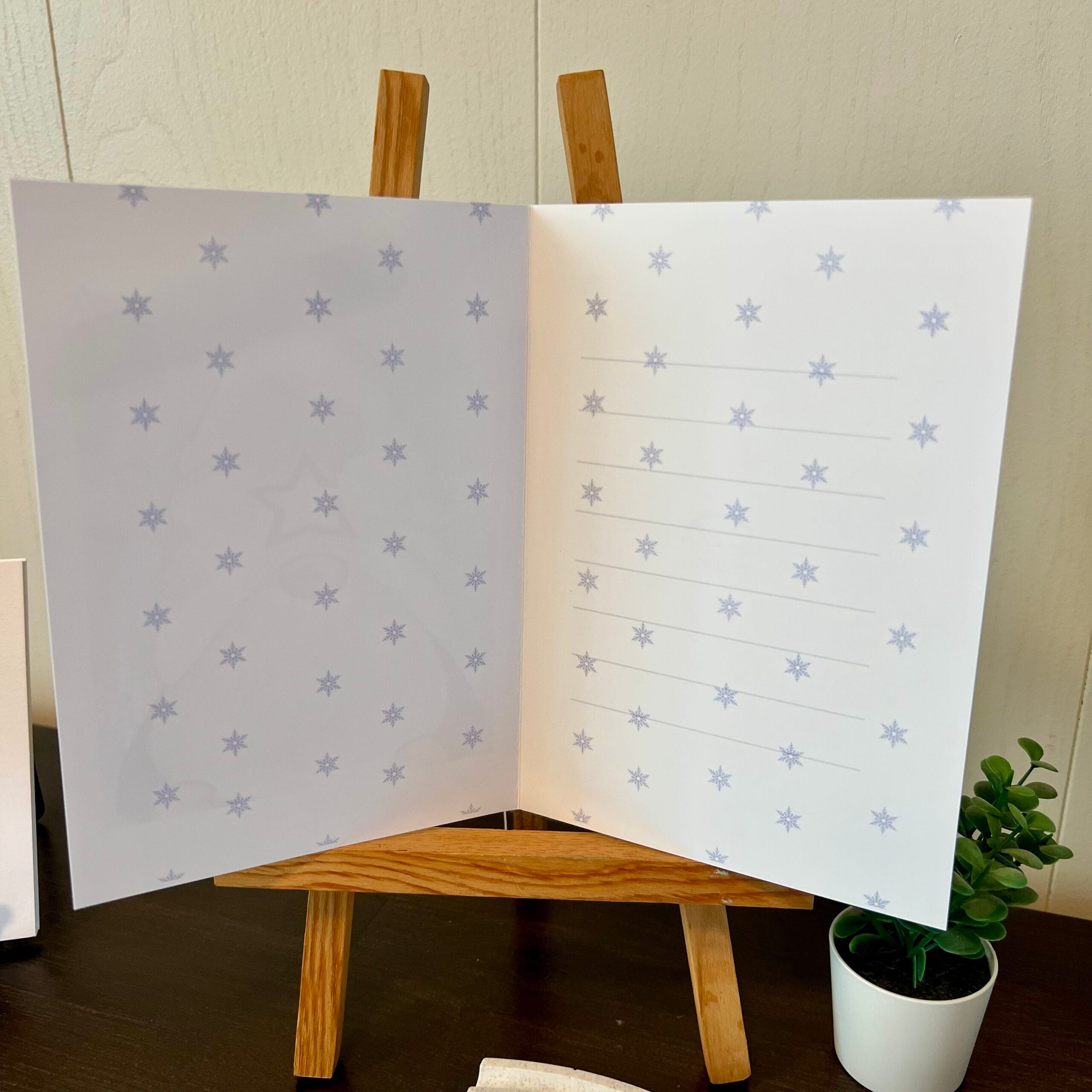 Allt kortið andar vetrarblíðu og hátíðlegu andrúmslofti með áletruninni „Gleðileg jól“.