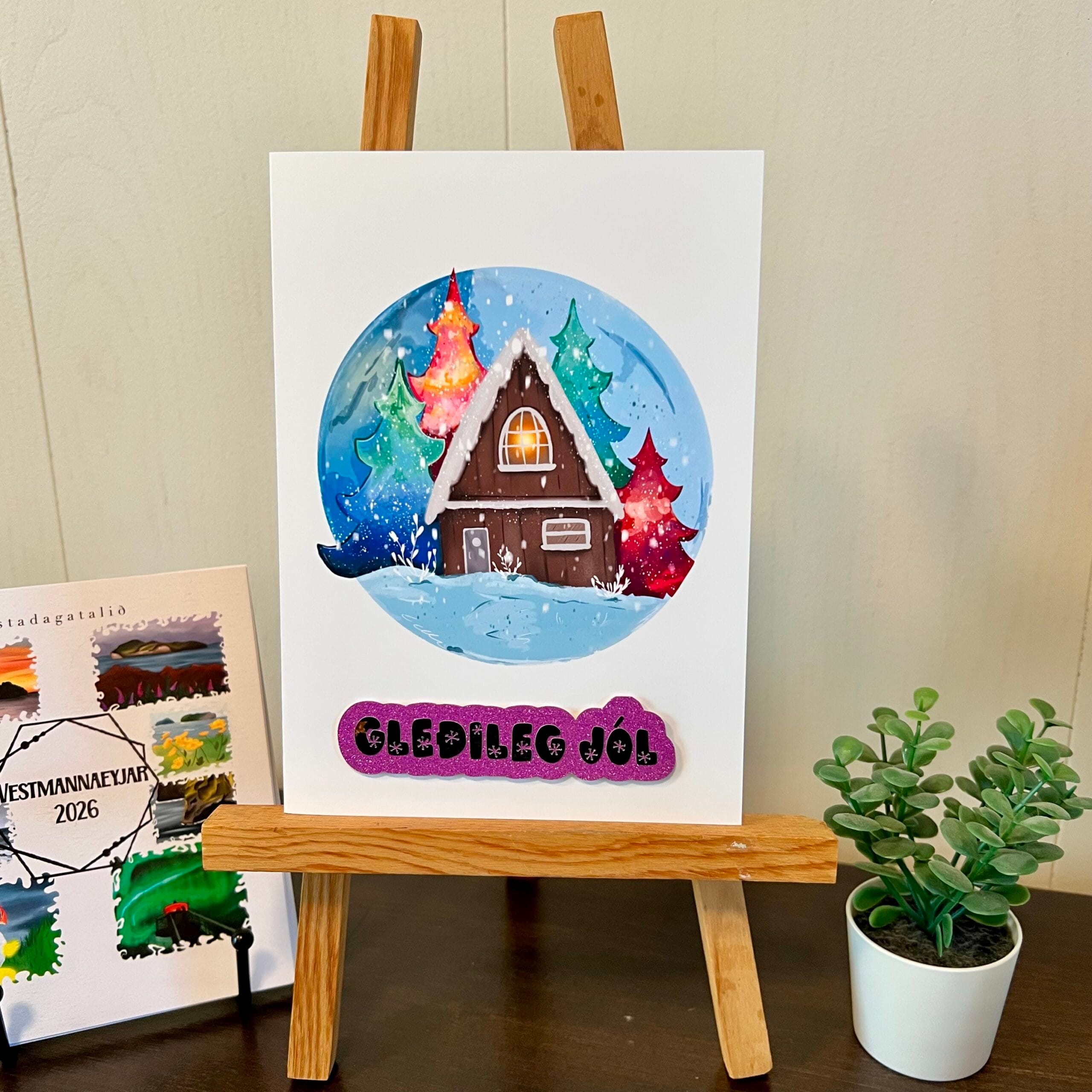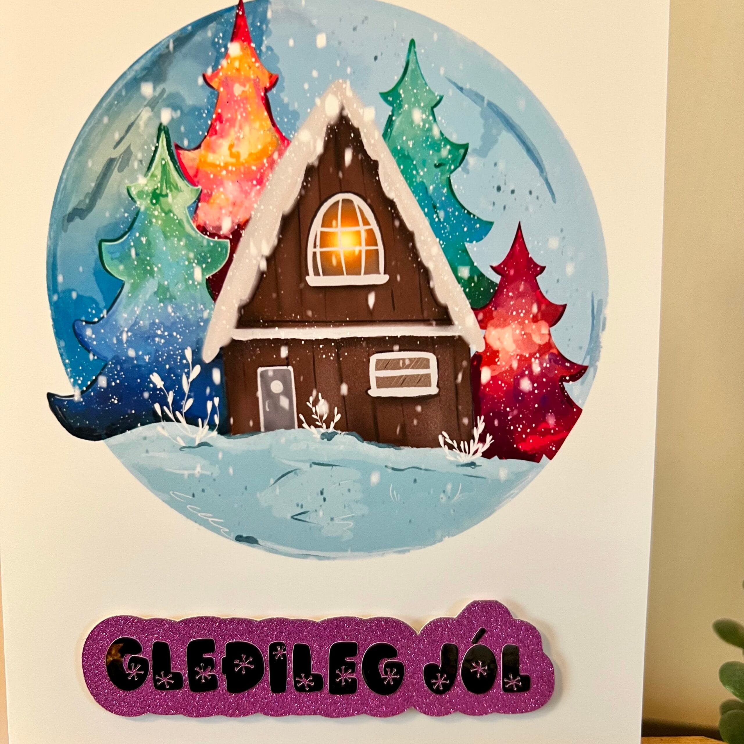 Handgert jólakort „Gleðileg jól“