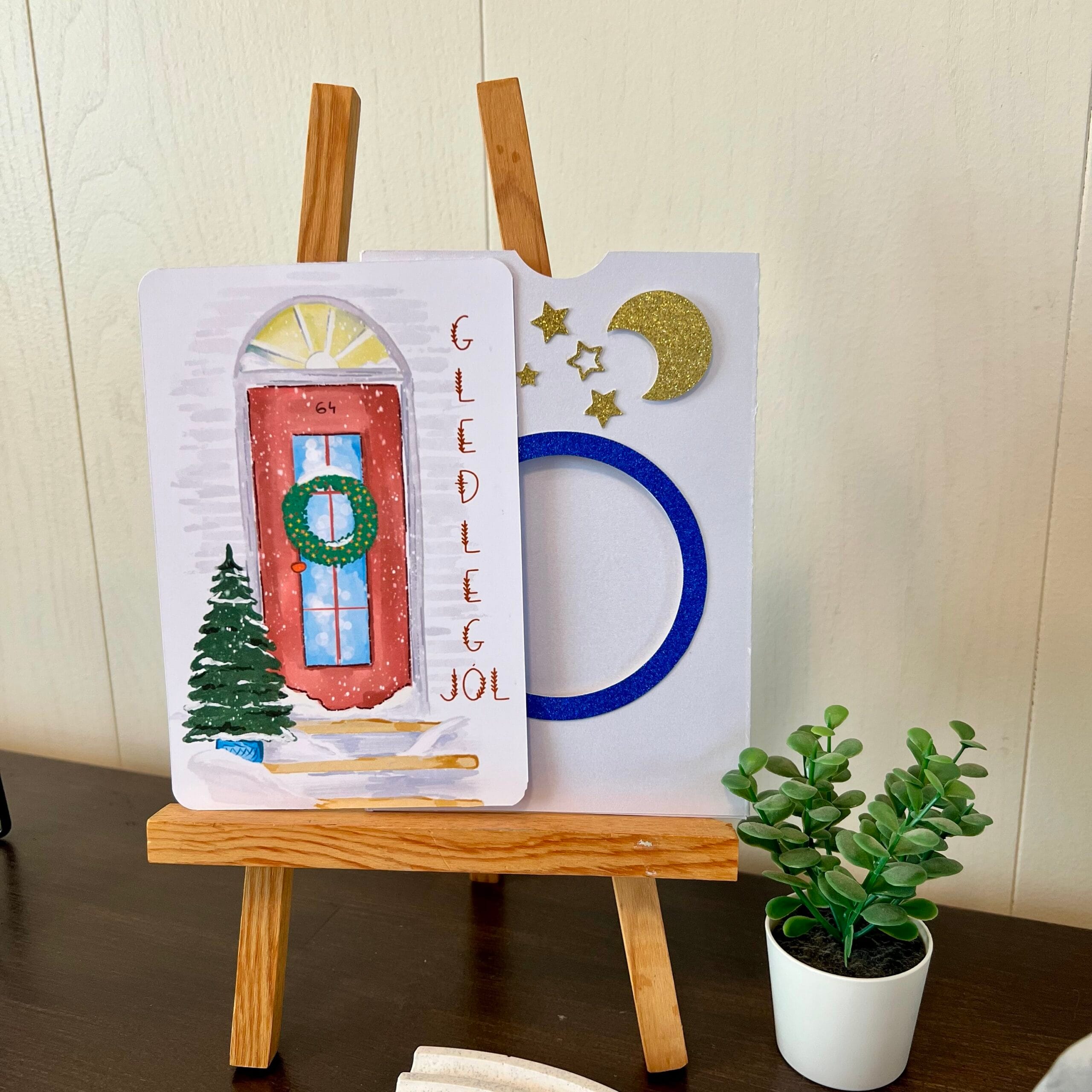 Handgerð kveðjukort „Veturhurð“
